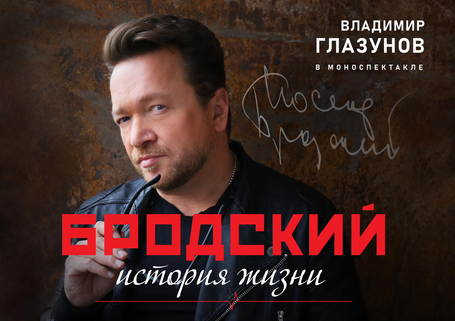 Известный телеведущий, режиссёр, актёр Владимир Глазунов в своём новом поэтическом моноспектакле «Бродский. История жизни» с присущей ему деликатностью перед публикой сотворит из мифа – легенду. Через стихи, дневники, письма, беседы, интервью, через любимую музыку поэта зрители получат полное представление об одной из самых ярких и загадочных фигур русской и мировой культуры. Факты и события жизни будут сменяться личными воспоминаниями поэта.