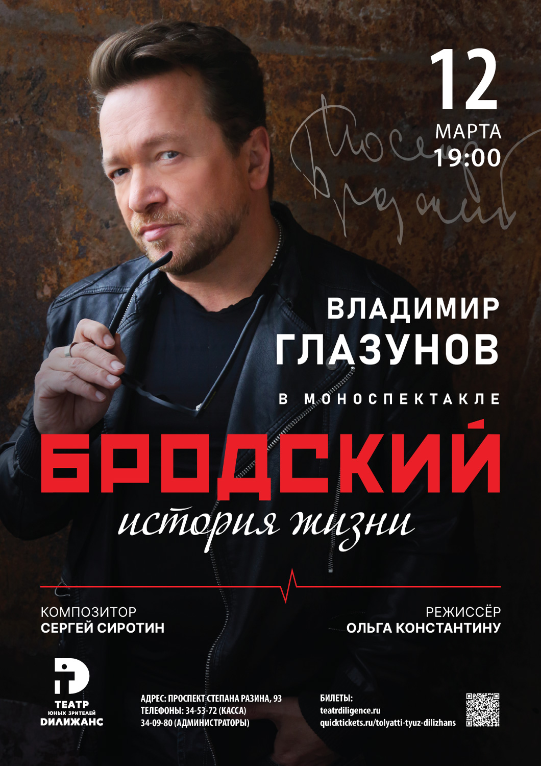 19:00 "Бродский. История жизни" Моноспектакль Владимира ГЛАЗУНОВА (16+) |