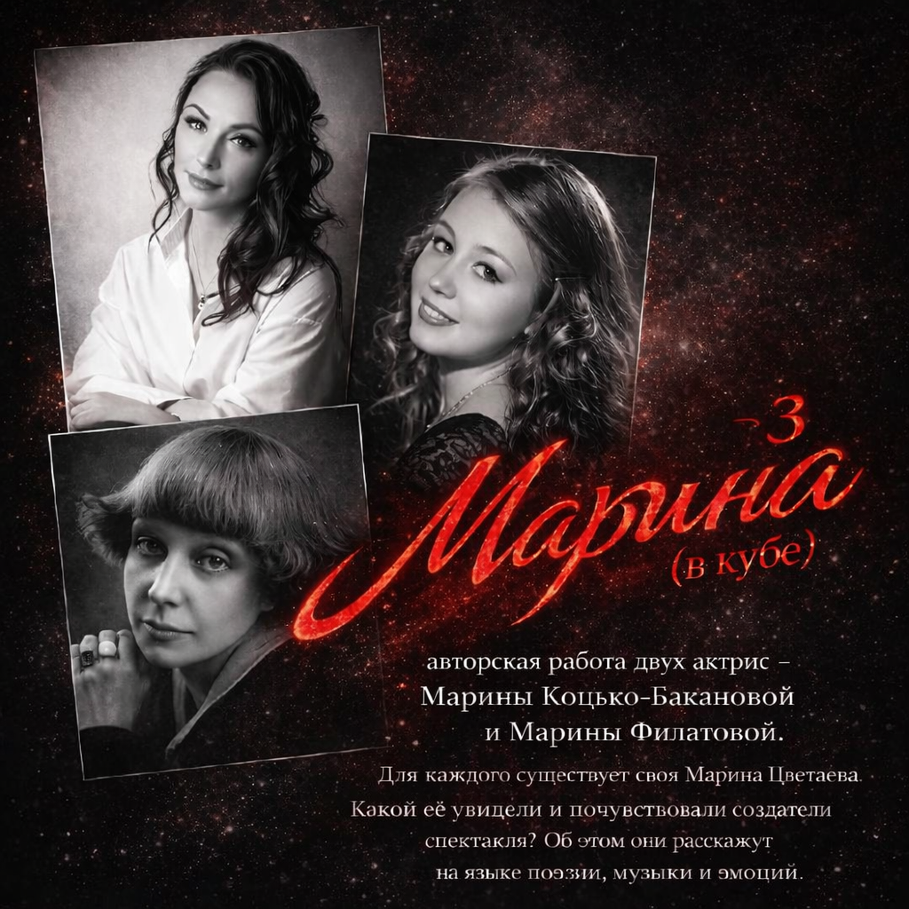 19:00 «МАРИНА 3 (МАРИНА В КУБЕ)» Литературно-музыкальный спектакль по произведениям М.И.Цветаевой (12+) |
